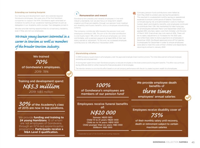44 VALUE CREATION REPORT 2020 GONDWANA COLLECTION NAMIBIA 45