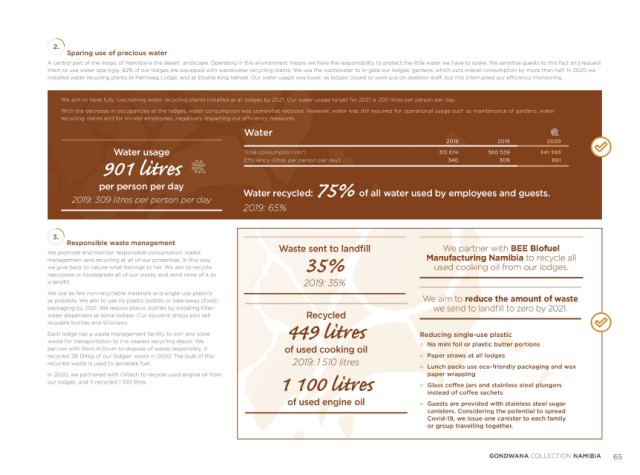 64 VALUE CREATION REPORT 2020 GONDWANA COLLECTION NAMIBIA 65