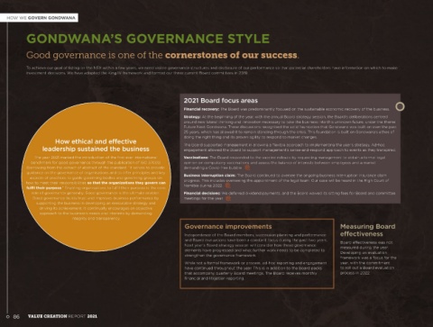 2021 Board focus areas Our views on governance